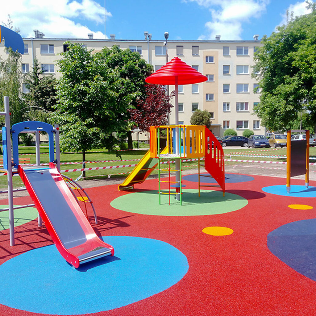 Je ideálny pre moderné detské ihriská, kde sa spája bezpečnosť s vizuálnym zážitkom.